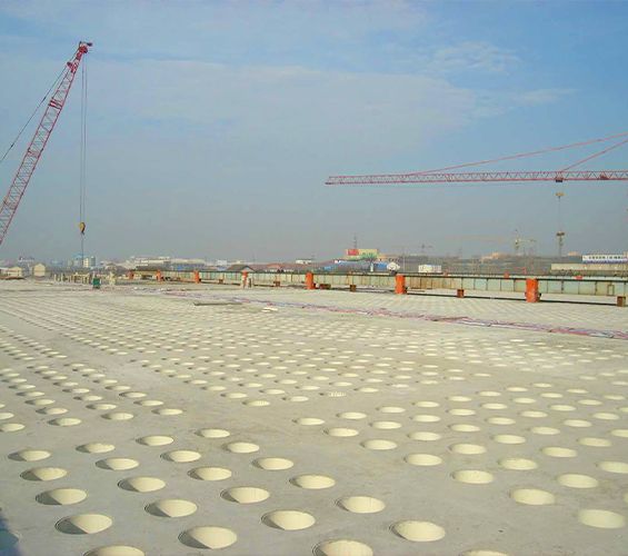 結構留孔:作為模板,澆筑混凝土后形成均勻圓形孔洞,構成奇氏板(華夫板) 結構。